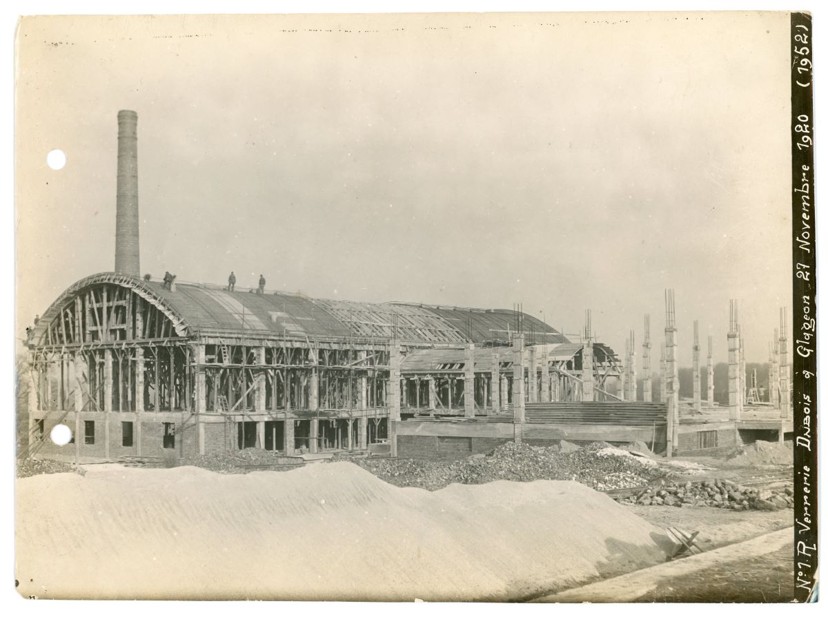 La reconstruction s'opère entre 1920 et 1922. Eugène Bruyneel en est l'architecte. Il dresse pour la verrerie, les plans d'une vaste usine fonctionnelle, avec une ossature de béton armé et un remplissage de briques.